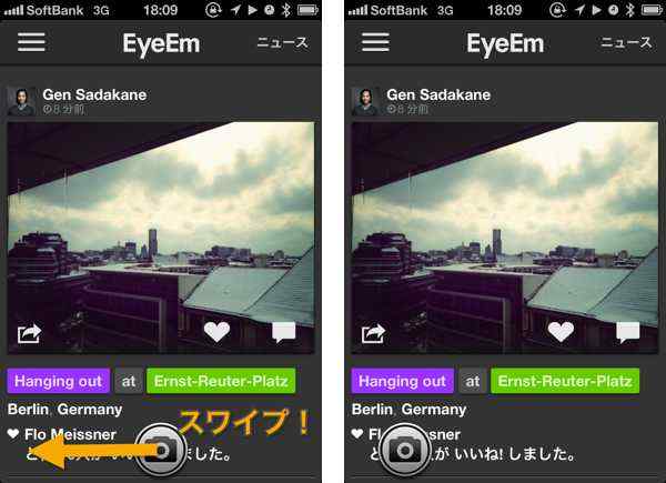 「EyeEm」のカメラボタンにちょっとした気遣いを発見した!