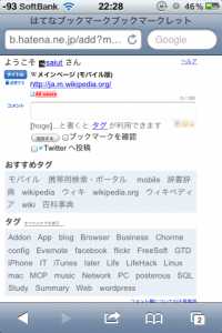 はてなブックマーク用ブックマークレット for iPhone - sarusaruworld lab - Web Lab