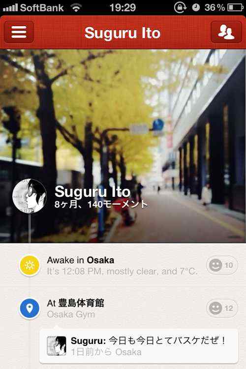 Pathにはカバー写真を設定することができます。先日公開されたfacebookのTimelineのように、自分の好きな写真を「カバー」として設定することができます。