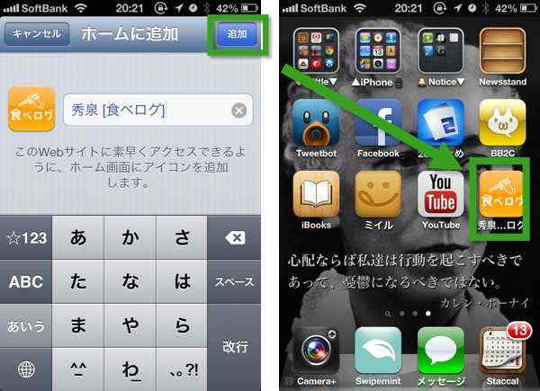 名前を決めると、iPhoneのホーム画面に追加されます。