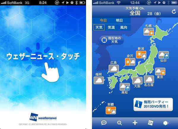 「ウェザーニュース」で起動時の画面を思うがままにしよう!