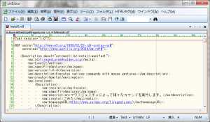 これが中身です。その中にあるinstall.rdfファイルをメモ帳なりで開いてみましょう。
