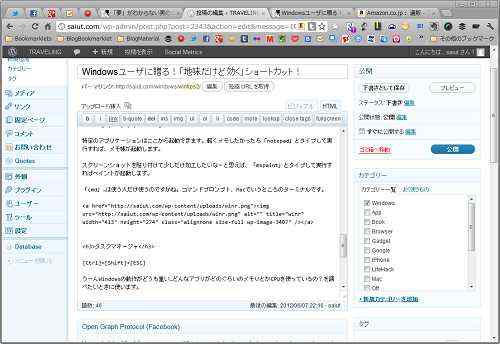 対して[Alt+PrtScn]を押すと、「アクティブウインドウ」(現在作業しているウインドウ)の画面キャプチャだけ取得できます。こんな感じ。 Chromeでブログ書いてるので、そのままChromeの画面がキャプチャされています。