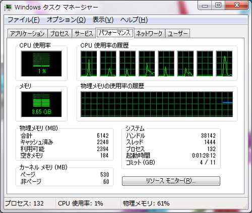現在のCPUの使用率、メモリの使用率の確認とか。