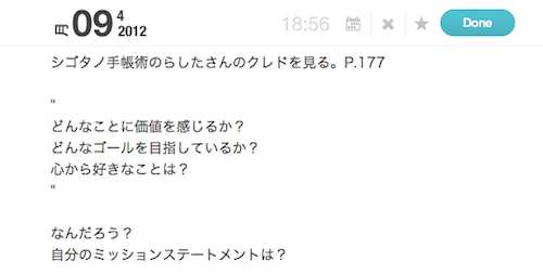 頭を巡らせて、それを残す。っていうことをあんまりしていなかったなーと改めて感じました。 140文字に自分の想いをまとめるのも凄いですが、思考を巡らせてぐわ〜〜っとマインドマップのように広げたものをそのまま残す。